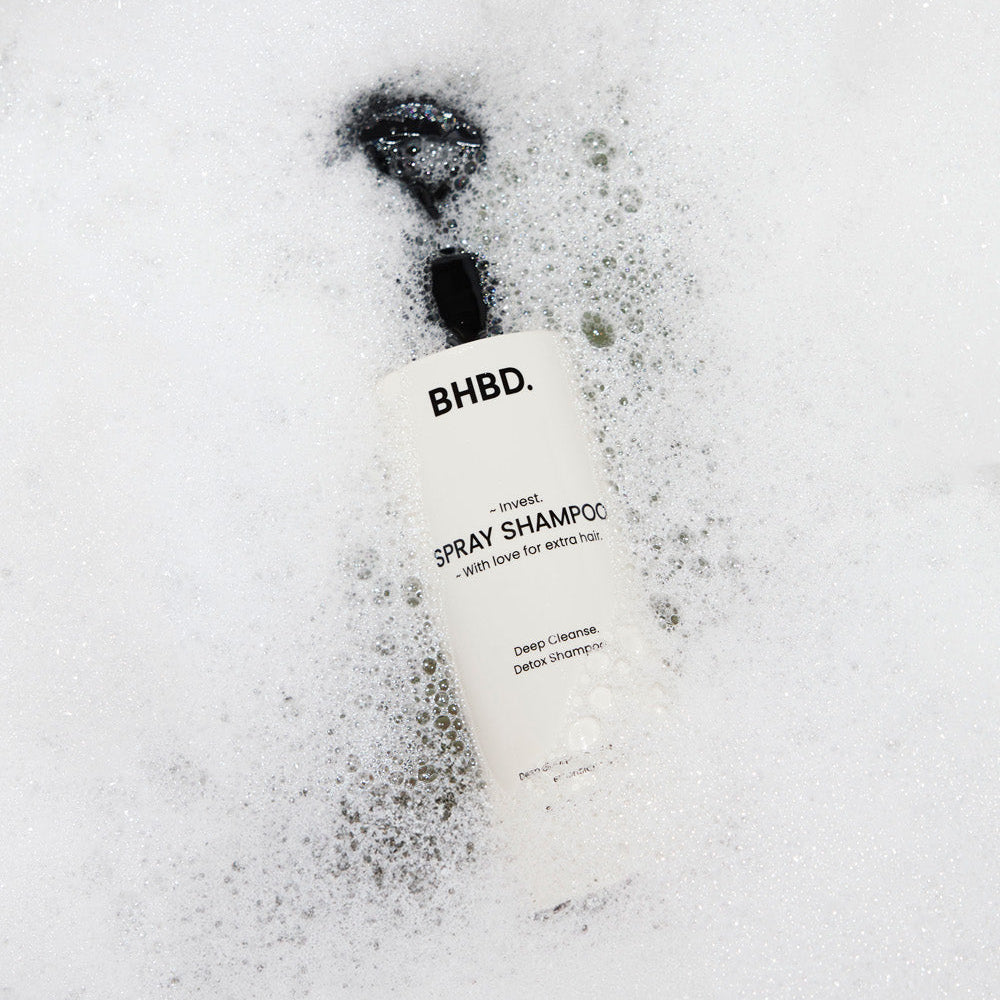 - Myj włosy raz w tygodniu szamponem głęboko oczyszczającym, polecamy szampon w sprayu BHBD. Szamponem należy umyć skórę głowy dwukrotnie, dokładnie spłukując po każdym nałożeniu.